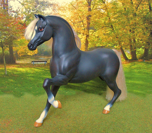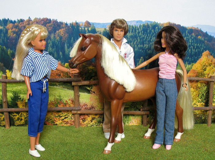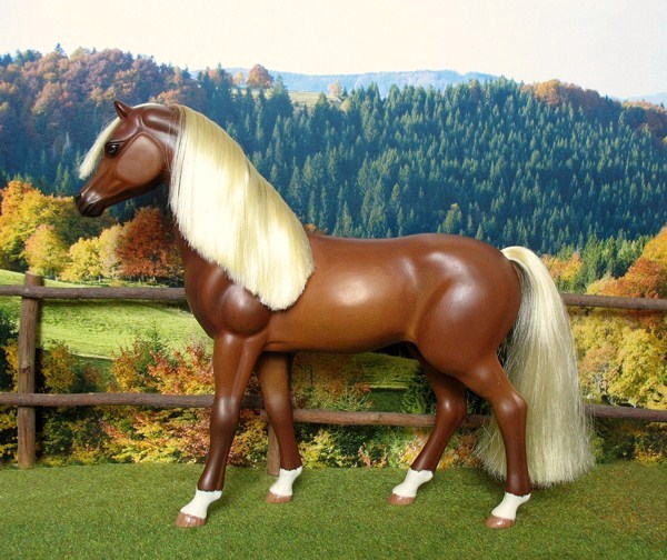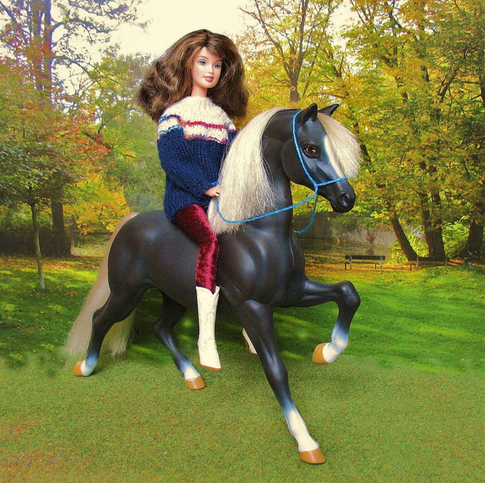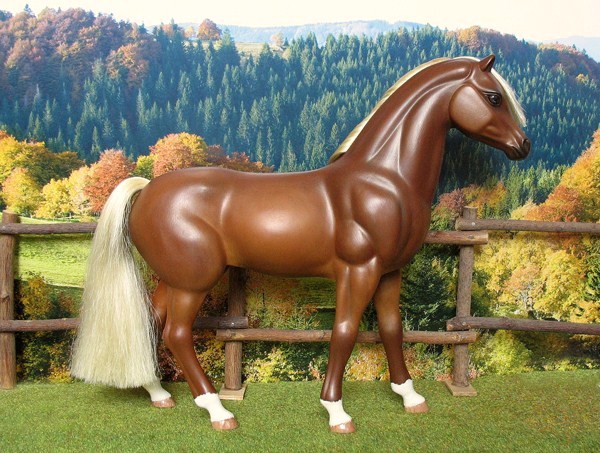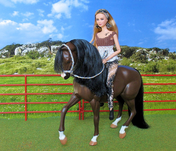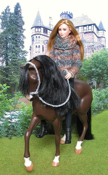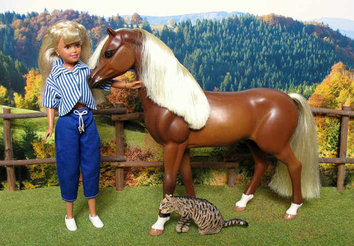 Das Pferd ist etwas kleiner und zierlicher als die anderen Barbiepferde, bei mir führe ich sie als Welsh-Araber mit dem Namen Goldfee.