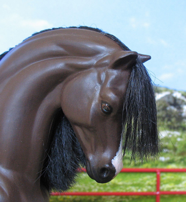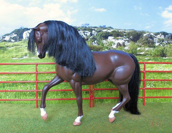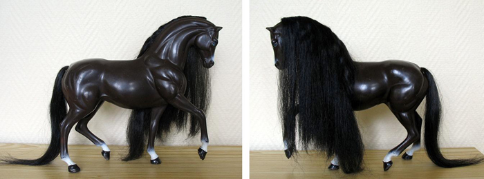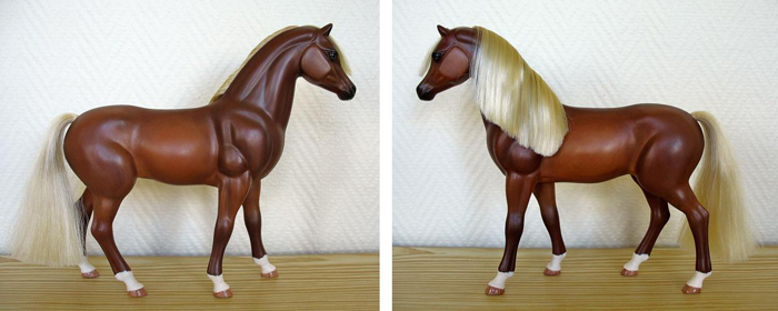 Dieser hübsche Dunkelbraune ist aus dem Barbie & Champion-Set von 1994. Leider hatte dieses Modell aufgrund seines Alters zahlreiche Macken und der Schweif war unglaublich ausgedünnt.