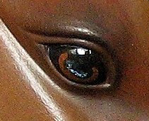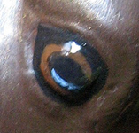 Ein Portrait von Champion und sein neu gemaltes Auge.