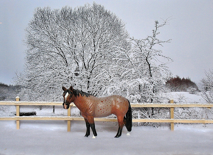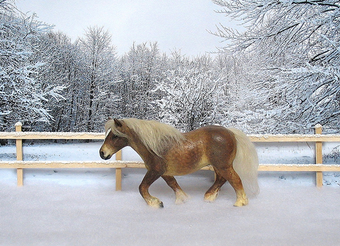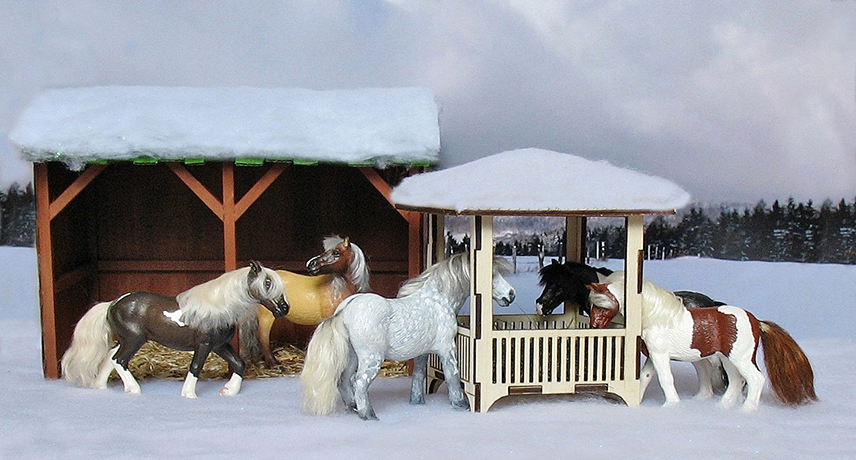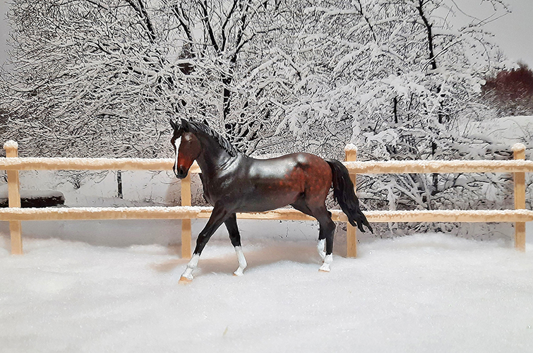Er passt von der Größe her für Schleich-Pferde und für größere Stablemate-Modellpferde.