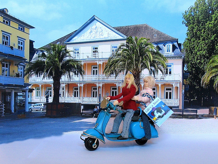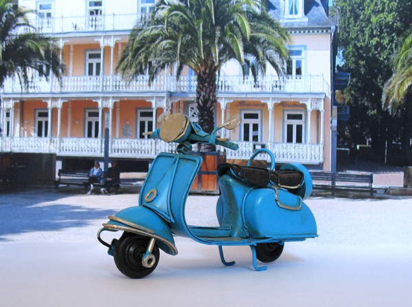 Auf Kreta in einem Andenken-Geschäft fand ich durch Zufall diese Vintage-Vespa, die für Schleich-Größe passend ist.