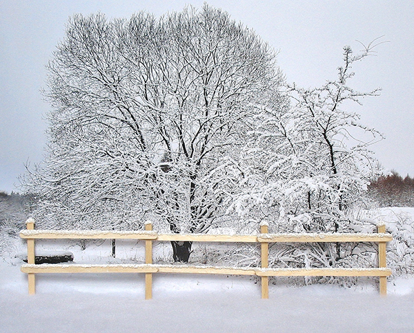 Zaun für ein Winter-Diorama: Aus immer drei aneinander geklebten Kaffeestäbchen habe ich einen Zaun zusammen gesetzt. Der Schnee auf dem Zaun entstand aus Zucker, der noch etwas mit weißer Acrylfarbe bearbeitet wurde.